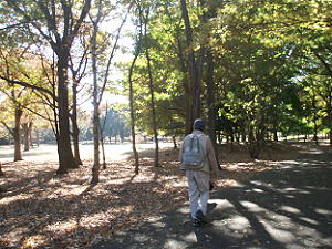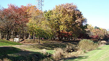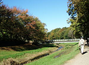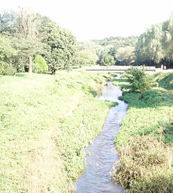 芝生広場を抜け、東八道路にかかる橋をわたると野川の流れが。