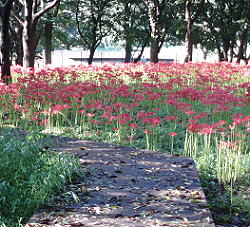 木道の両脇は秋海棠やツリフネソウ そして彼岸花の小さな群生地