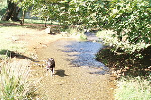 わき水広場で水遊び。 野川に注ぐとてもきれいな流れです。
