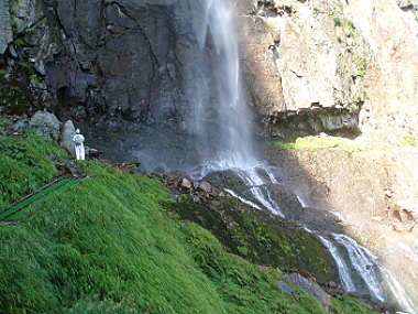 奥の院から不動滝までは5分ほど。 まっすぐ流れ落ちる85mの滝。 すごいんだけどなんか優しい雰囲気もある すばらしい滝でした。 |