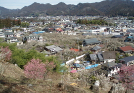最初に一番の見所「梅の公園」を、向かいの山(都立天満公園)から。
