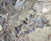 小下沢との合流点で一休み。 ここからの登り道。 大きな霜柱があちこちに。 |
