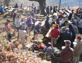 | 三連休の初日。 登山道入り口も普段に比べると随分にぎやか。 |