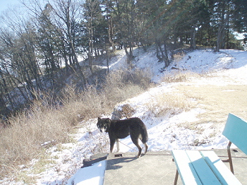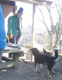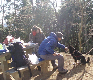 奥の雑木林の向こうが長尾平の先端。 眺め抜群・日当たり良好のランチスペースです。 |