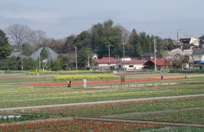 車は人出が少ないのでは、と思われるチューリップ祭りの会場前の駐車場(500円)に。
