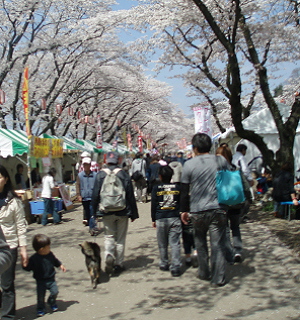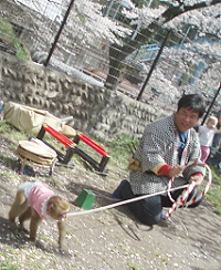 | さくら祭りイベント会場は露天がいっぱい。 猿回しさんも来ていました。 もちろんワンコにもたくさん会いました。 |