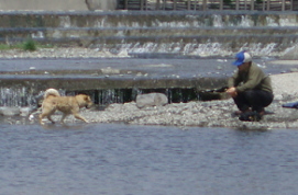 おじいさんもワンコもとっても楽しそう。 |