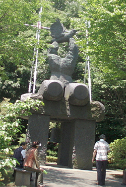 飛ぶ鳩と、下に自由民権の鐘があります。
