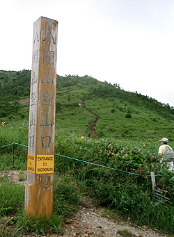 | まず1934.5mの八間山頂上目指して出発。 登り始めるとすぐにコマクサ群生地の案内板。 もちろん寄り道。 |