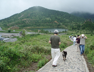 歩きやすく整備された遊歩道。 展望所までは約20分。 おおぜいの人が登っていきます。 花凛もおおぜいの人から、えらいね!、 って言われてしまいました。 でも花凛にとってはへっちゃらの道。 私の方がえらかった。 |