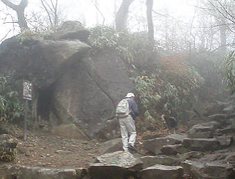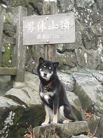 15分ほどで岩ゴロゴロの女体山頂(876m)到着。